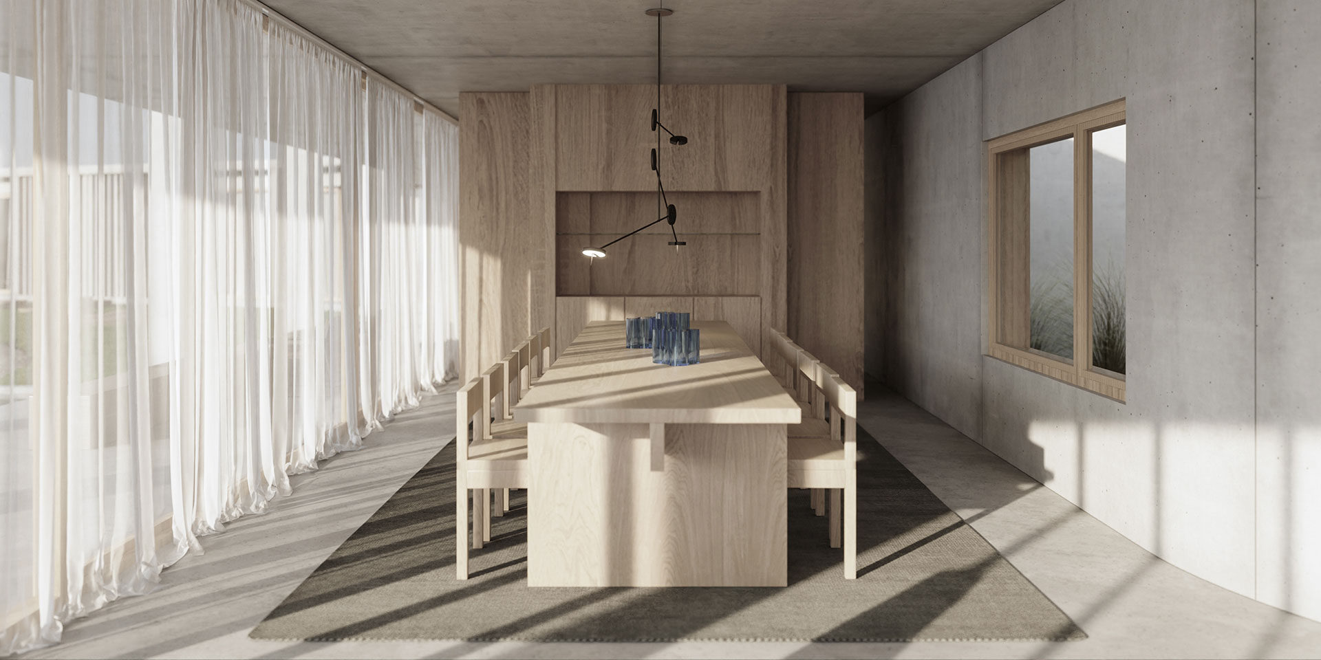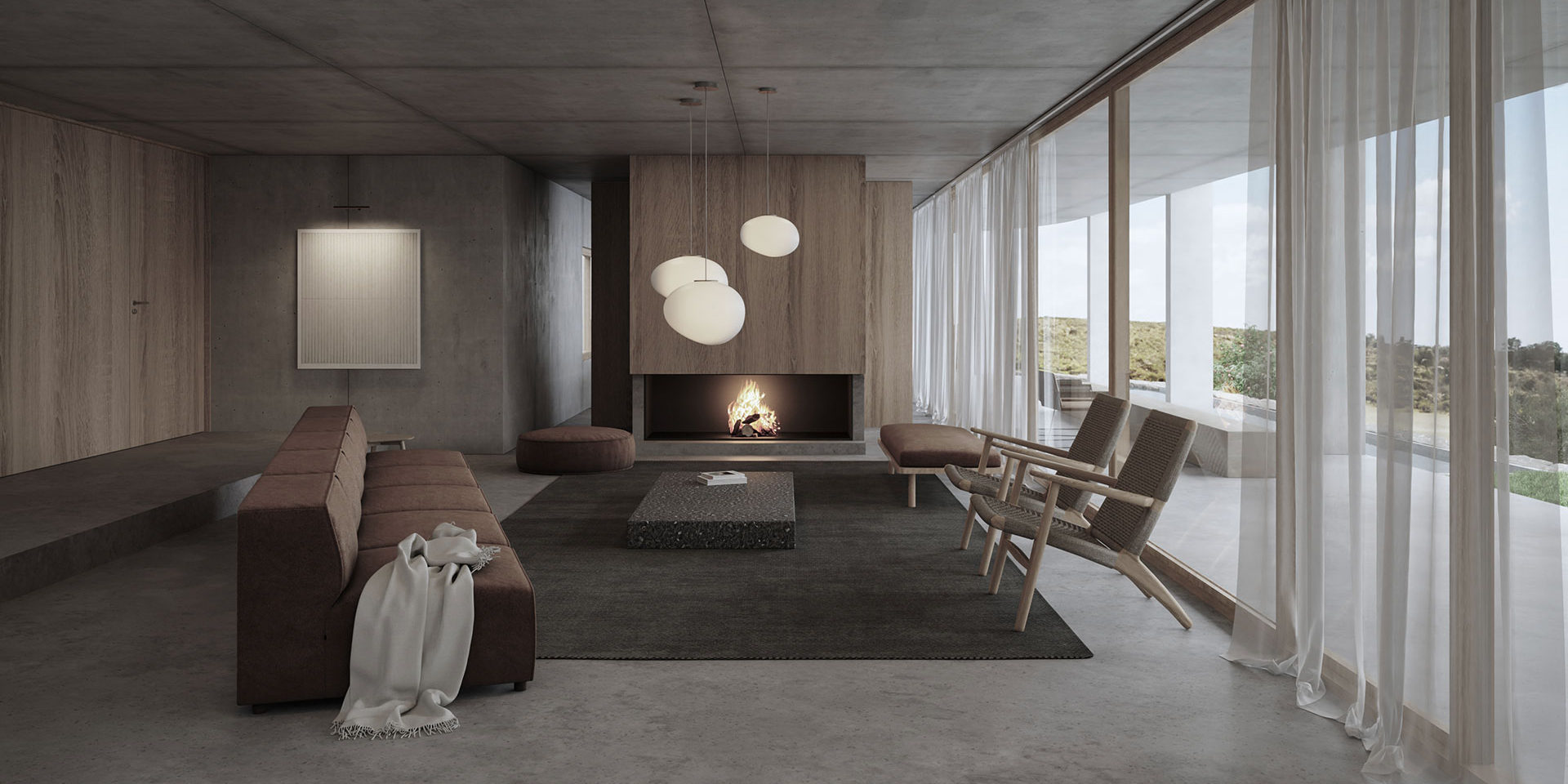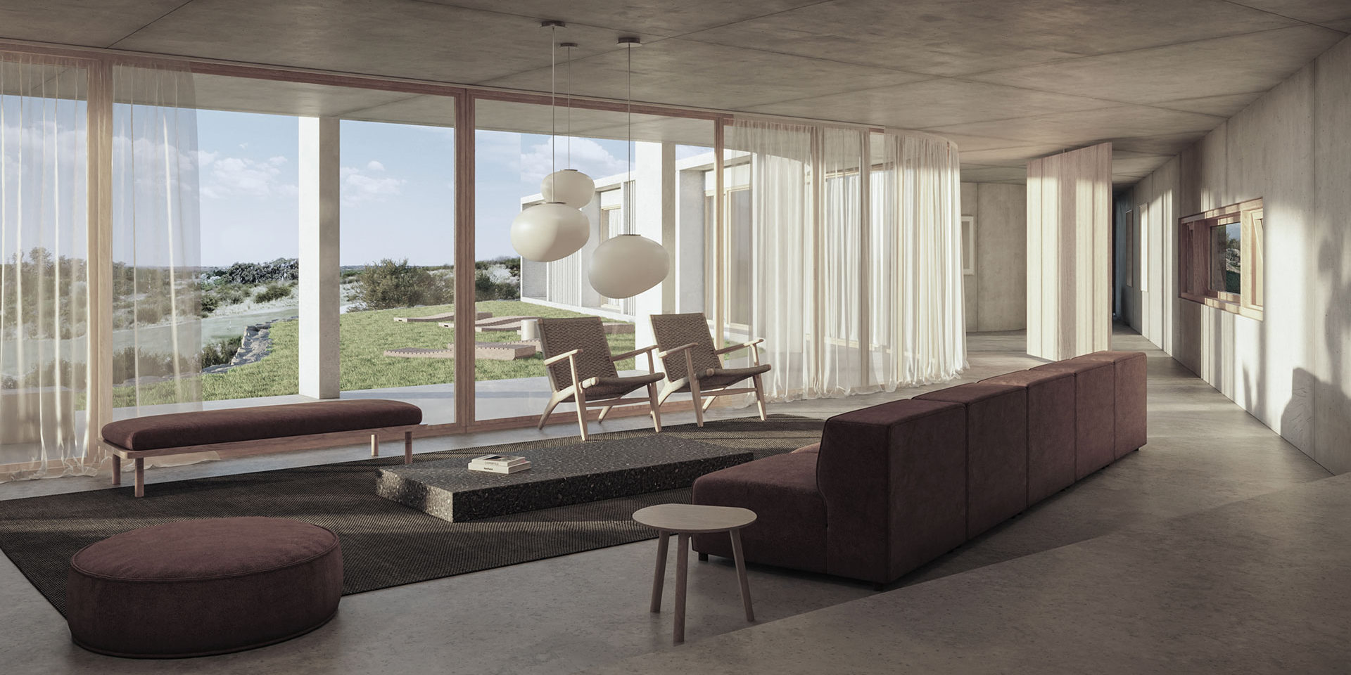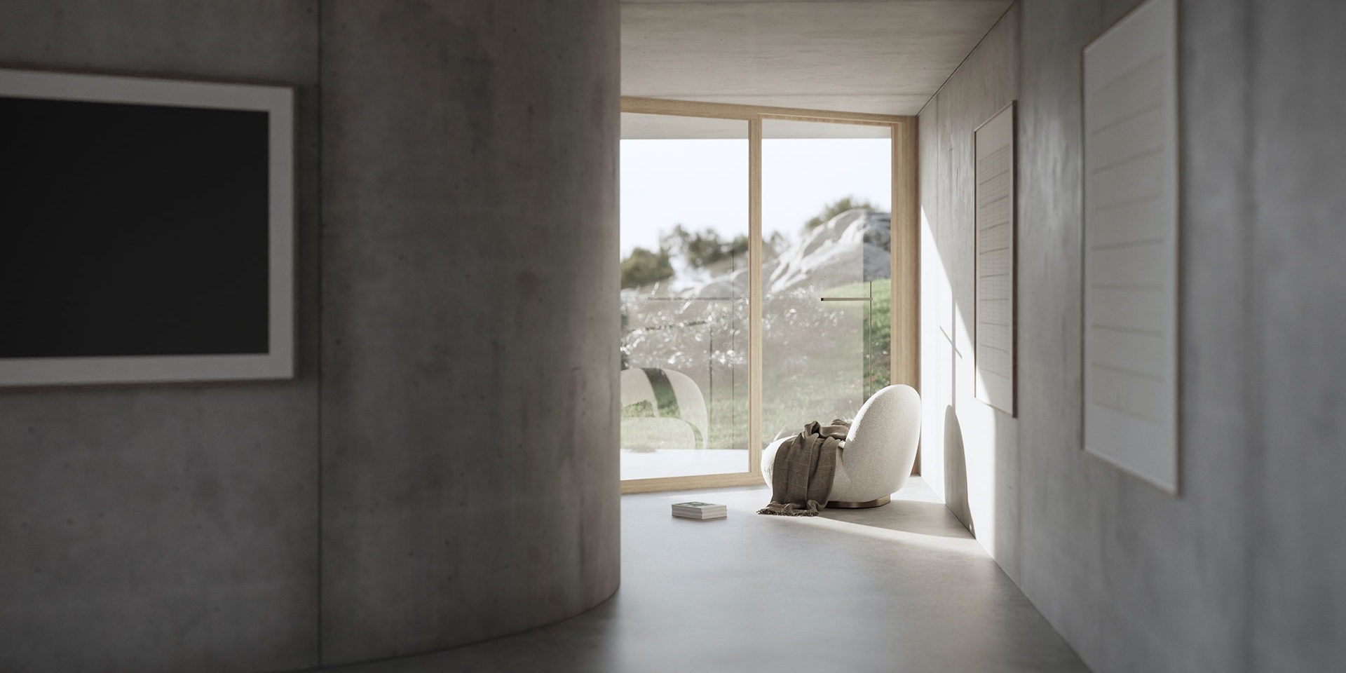 The sector is completed with a television room, and a space for reading and contemplation that looks towards a group of rocks.