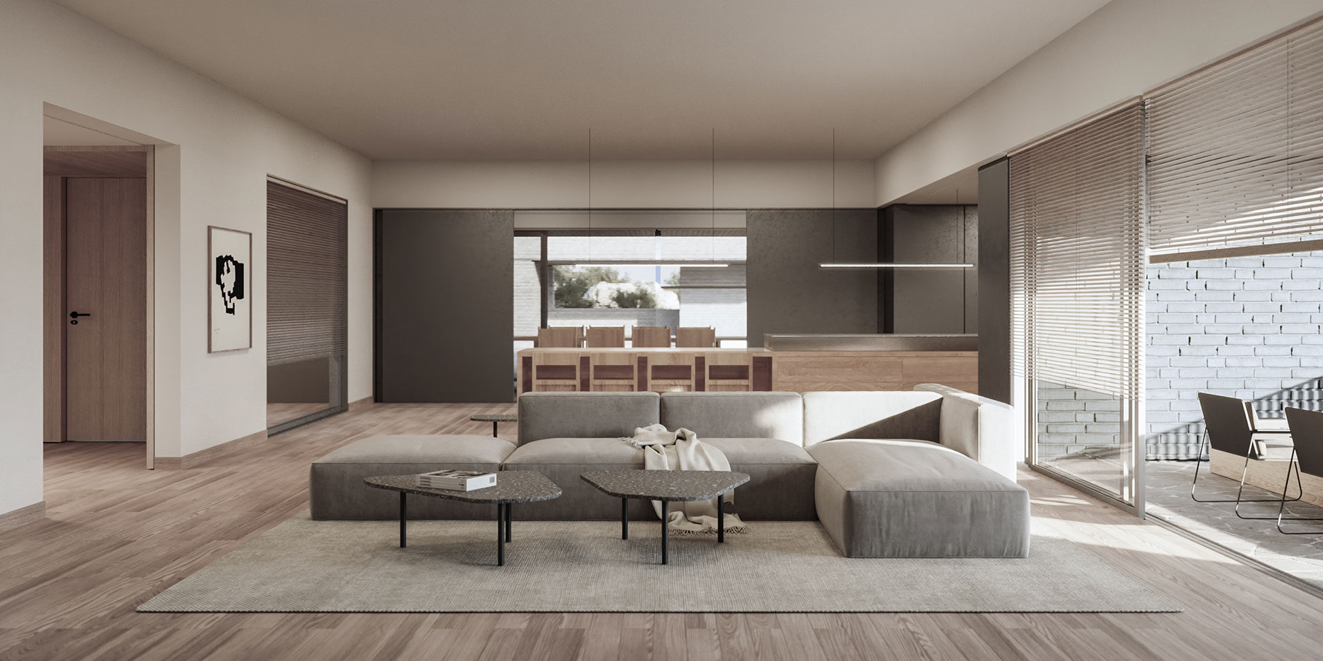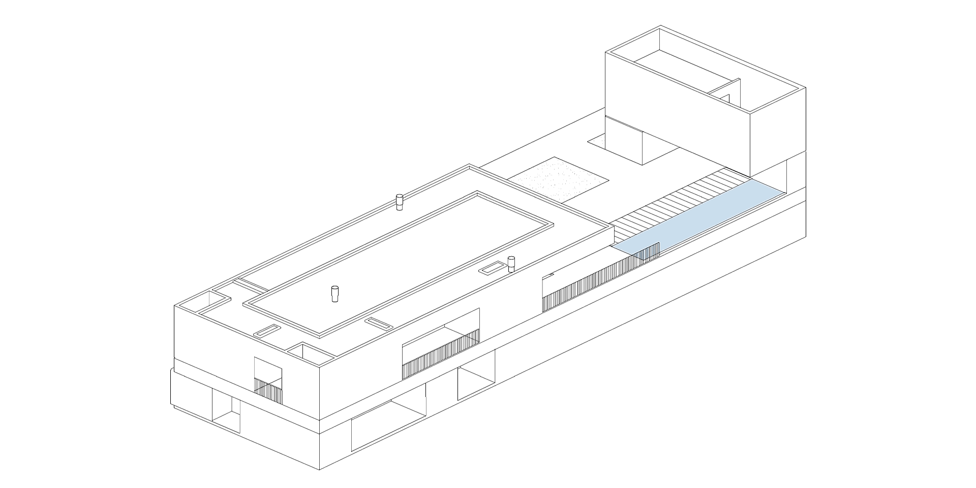 Its horizontal proportion is cut and grows at precise moments, depending on the spaces it houses, in order to discover different ways of inhabiting them: sometimes in a contained way and others with great openness.